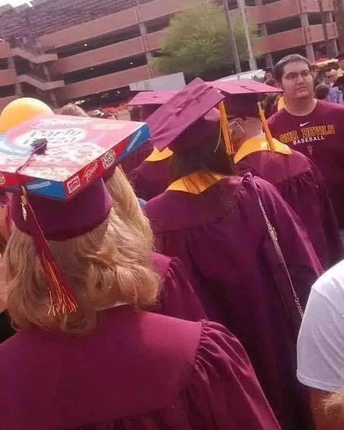 Saat semua lulusan pakai toga polos, ada yang menambahkan aksesori nyentrik—tetap pede!